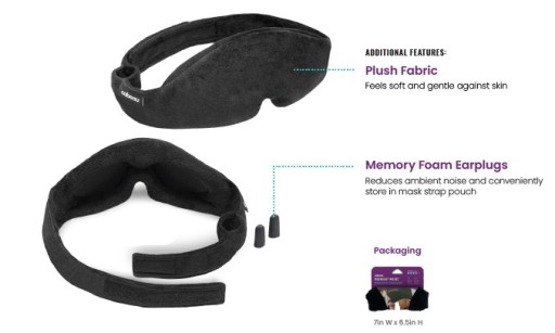 W zestawie maska i zatyczki do uszu z pianki zapamiętującej kształt.