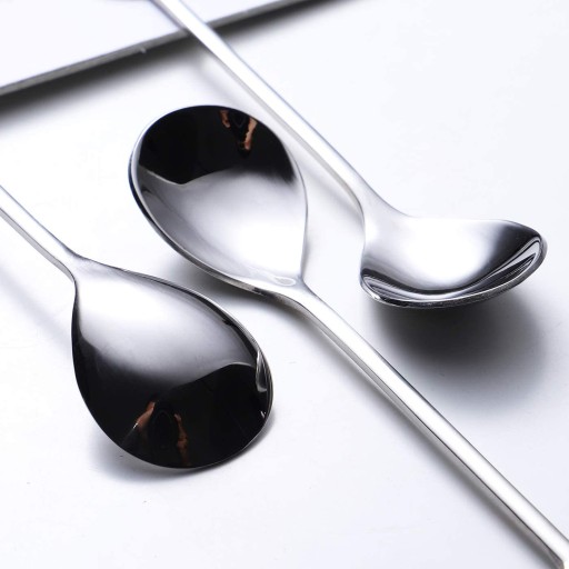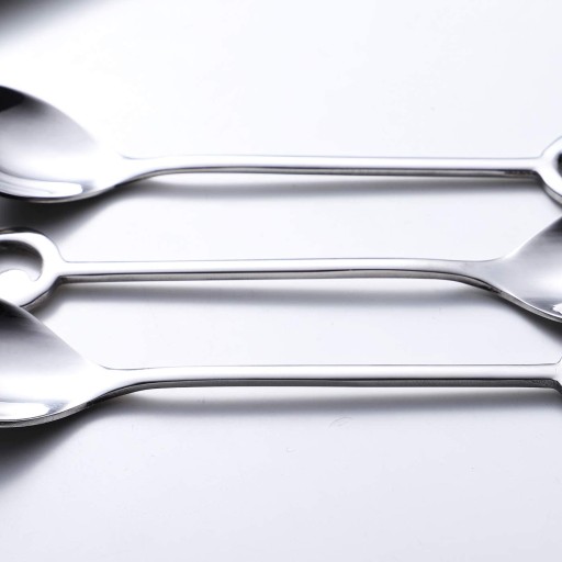 - smukłe metalowe łyżeczki z rączką w kształcie klucza wiolinowego