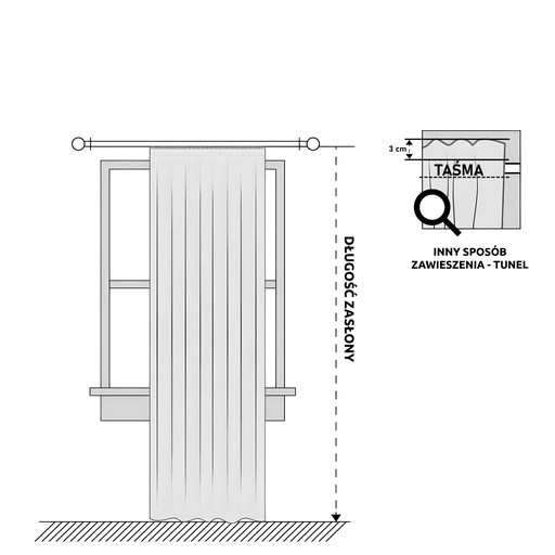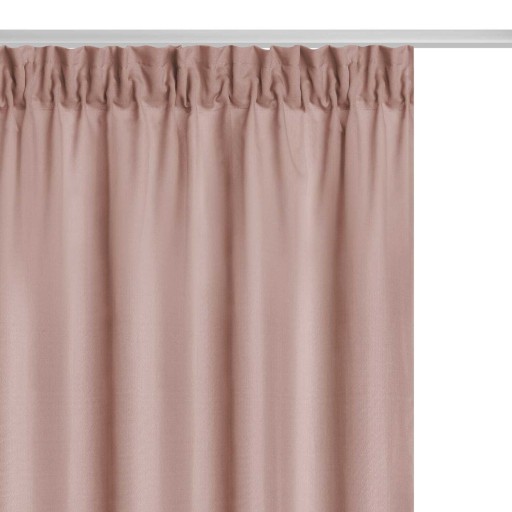 Zasłona pudrowa doskonale wpasuje się do wnętrz w stylu skandynawskim czy minimalistycznym. Mocuje się ją na karniszu za pomocą wszytej taśmy. Taka konstrukcja sprawia, że można zastosować dowolną gęstość marszczenia.