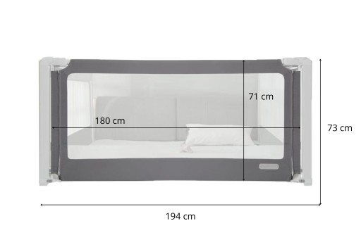 - Długość całkowita: 194 cm (barierka musi być kilka cm krótsza, w celu dopasowania jej do materacy o długości 200 cm)