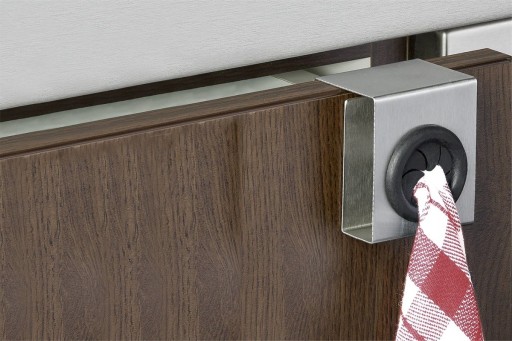 - Sprytny gadżet: Zestaw haczyków kuchennych to praktyczne rozwiązanie, które ułatwia zawieszanie ręczników. Dzięki funkcji push & pull wystarczy wcisnąć materiałowy ręcznik w otwór i gotowe.