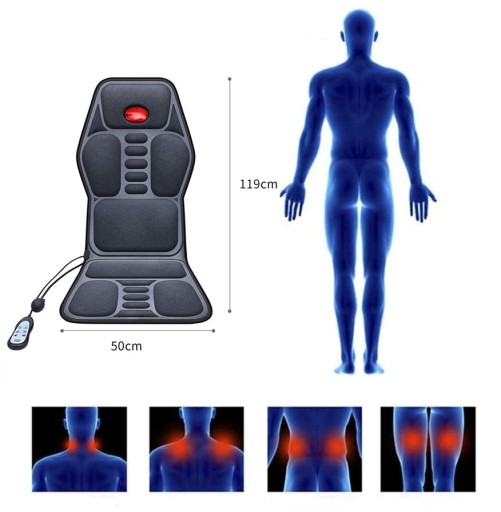 Obszar masażu jest bardzo duży obejmuje kark, plecy całą strefę lędźwi i uda.