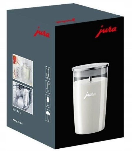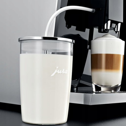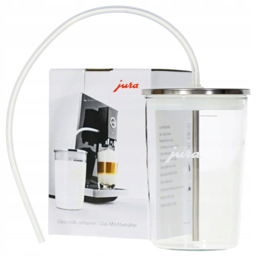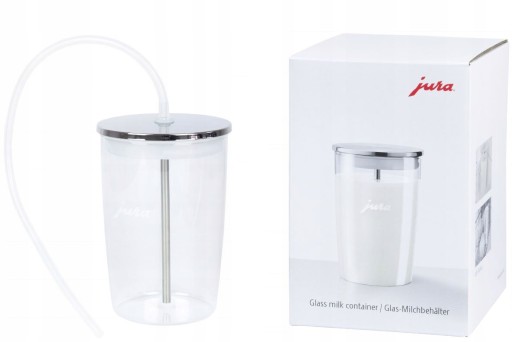Szklany pojemnik na mleko JURA jest alternatywą dla oryginalnego opakowania na mleko (karton, butelka, etc.)