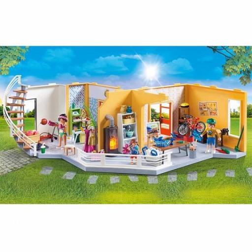 Playmobil 70986 Dodatkowe piętro Nowoczesnego Domu. Praktyczne powiększenie powierzchni użytkowej wnosi do domu jeszcze więcej życia. Jest dużo miejsca na wypoczynek i hobby. W sali fitness można trenować na steperze i maszynie bokserskiej. Jeśli rower się zepsuje, można go sprawdzić i naprawić na stojaku montażowym. Tuż obok rodzą się kreatywne pomysły i uwieczniane są na płótnie przed migoczącym ogniem kominka. Nowoczesna pralka czeka, aby ułatwić rodzinie prace domowe. Zestaw zawiera dwie figurki PLAYMOBIL, figurkę dziecka, kolejne piętro do nowoczesnego domu (9266), maszynę bokserską, stół warsztatowy, rower, różne sprzęty i narzędzia do ćwiczeń oraz wiele innych dodatków, które odtworzą kolorowe życie rodzinne. Dzięki dołączonym szablonom tapet można dowolnie upiększyć pomieszczenia w domu.