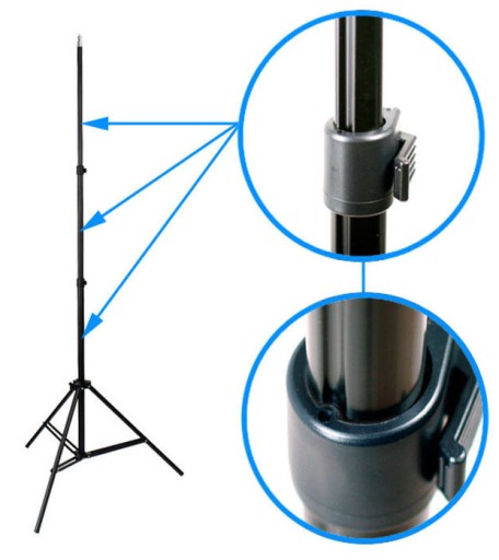 ✅ Teleskopowy mechanizm rozkładania minimalizuje wymiary statywu po złożeniu oraz pozwala na jego błyskawiczne rozkładanie lub składanie, dzięki czemu uzyskamy szeroki zakres pracy (regulowany jest płynnie na dowolnej wysokości w zakresie 75-230 cm).