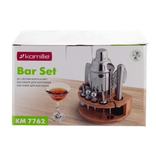 DUŻY ZESTAW BARMAŃSKI z podstawką do DRINKÓW KOKTAJLI SZEJKER 11el. KAMILLE KM-7762