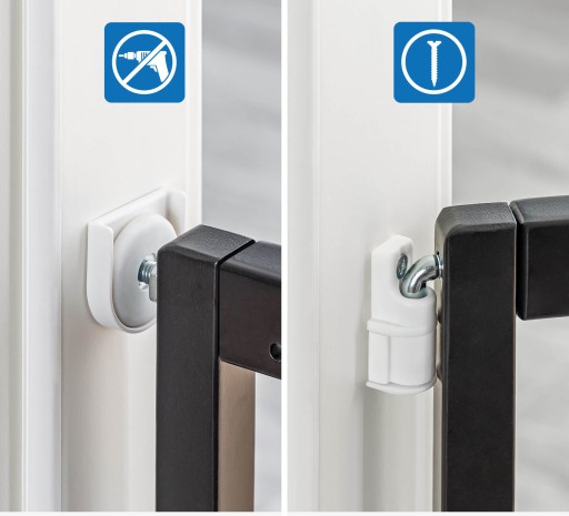 - Montaż rozporowy. Bramka działa w tym układzie bez zawiasów. Dobre rozwiązanie gdy montujemy ją w miejscu, gdzie będzie rzadko używana, lub wtedy gdy będzie używana krótko (np. podczas wizyty u babci). Aby otworzyć bramkę należy unieść ją do góry i wyjąć. Po zwolnieniu rozporu bramka zostaje nam w rękach. Aby zamknąć należy ją ustawić w docelowym miejscu i nacisnąć od góry aby nastąpiło rozparcie. W przypadku gdy bramka będzie często używana to polecamy jej przykręcenie lub kupno innej bramki typowo rozporowej