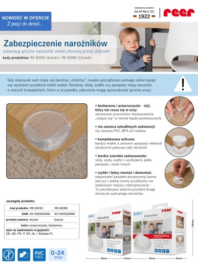 Osłony zabezpieczenia narożników stołów blatów szafek regałów - 4sztuki REER