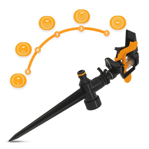 ✅ **MOŻLIWOŚĆ WYBORU ZAKRESU ZRASZANIA (30-360°) - bez problemu dopasujesz pracę zraszacza do terenu, na którym jest wykorzystany.