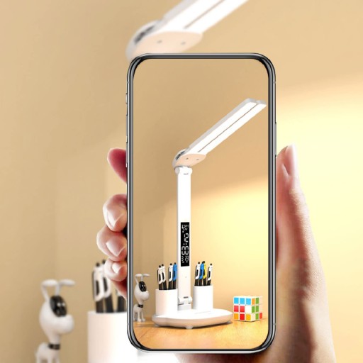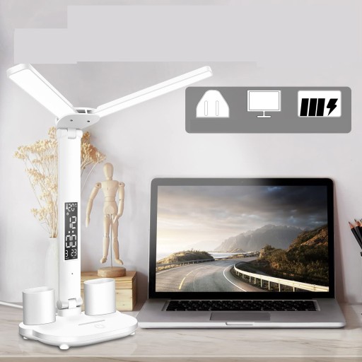 ta stylowa lampa biurLED (ta stylowa lampa obsługuje również monitorowanie temperatury, wyświetla godzinę i datę kalendarza, wszystko może być wyraźnie wyświetlane na dużym wyświetlaczu LCD, przenośny i jasny, idealny do nauki w sypialni i do czytania.