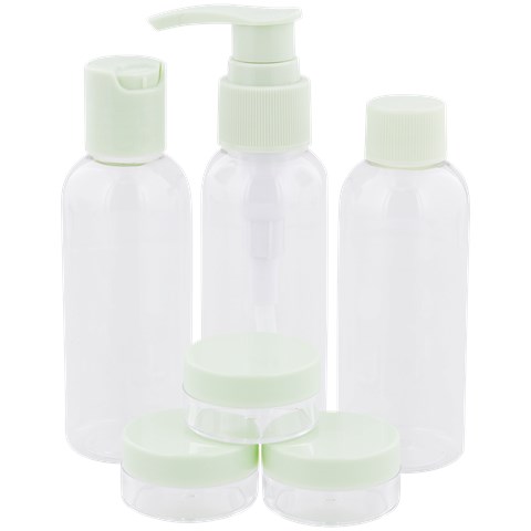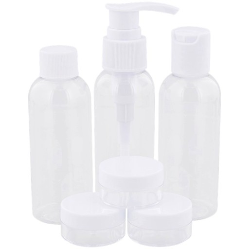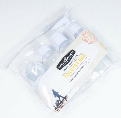 Zestaw siedmiu pojemniczków idealnych do przelania żelu lub płynu dezynfekcyjnego, czy innych produktów kosmetycznych. Zabierz kosmetyki ze sobą w bagażu podręcznym w tym praktycznym, przezroczystym etui podróżnym. Idealny zestaw na wyjazd czy lot samolotem.