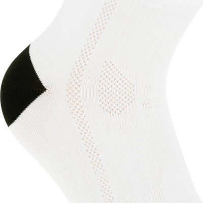 Podczas jazdy na rowerze, zarówno podczas zwykłego przemieszczania się, jak i na wyścigach, stopy są narażone na duży wysiłek. Pedałowanie wywoływać może otarcia, które, w połączeniu z potem, mogą być bardzo nieprzyjemne. Dlatego właśnie skarpetki dostosowane do jazdy rowerowej przyczyniają się znacząco do poprawy komfortu. Skarpetki B'Twin 500 z lekkiego tworzywa odprowadzają pot i zapewniają komfort podczas regularnej jazdy.