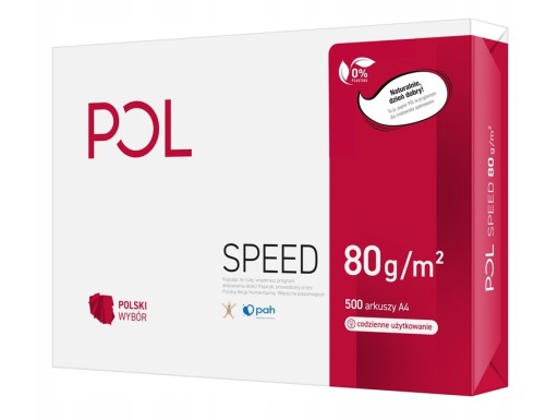 Papier jednego z najbardziej znanych producentów zapewnia bezawaryjne i szybkie drukowanie. Kupując go, unikniesz przykrych niespodzianek takich jak: szybkie zaginanie, przebijanie na drugą stronę oraz nieestetyczny szaro-żółty odcień kartek. Co więcej, papier POLspeed jest w pełni przyjazny dla środowiska – posiada symbol EU EcoLabel, przyznawany wyłącznie najbardziej ekologicznym produktom. Papier świetnie sprawdzi się zarówno w przypadku drukarek laserowych, jak i atramentowych.