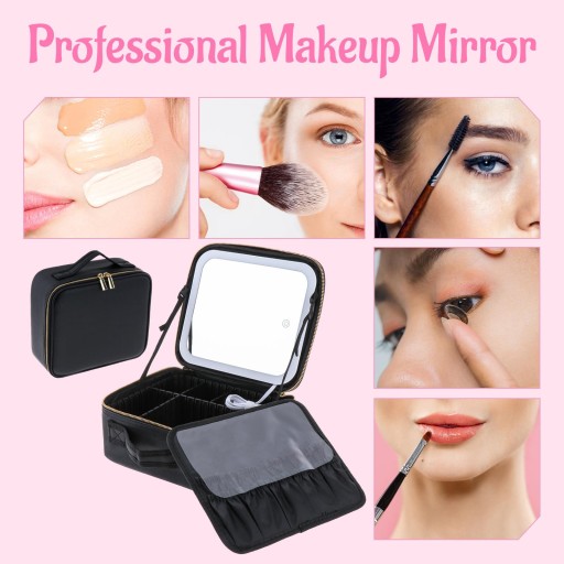 Podróżna kosmetyczka do makijażu z lusterkiem i lampkami Kosmetyczka Przenośna czarna