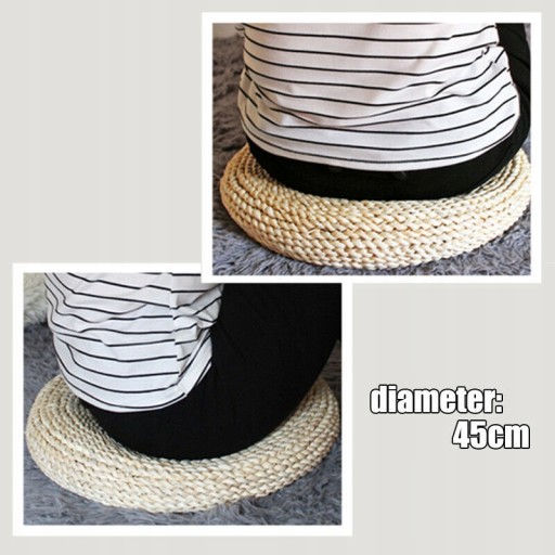 Grubość: 7 cm/2,75 cala Materiał: naturalna gąbka ze słomy Kolor: naturalny Pokój: sypialnia, jadalnia, domowe biuro/gabinet, wewnątrz/na zewnątrz, salon Pakiet zawiera: 1 X okrągłą poduszkę ze słomy
