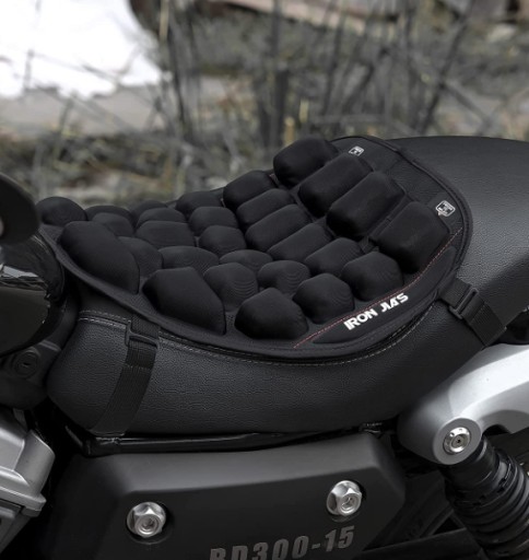 Pneumatyczna poduszka do siedzenia na motocyklu zapewnia redukcję wibracji i komfort na drodze.