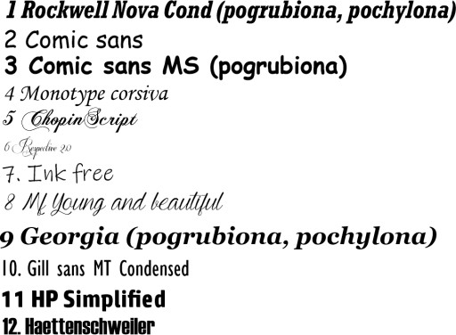 Dla każdego wzoru możesz wybrać też dowolną czcionkę.