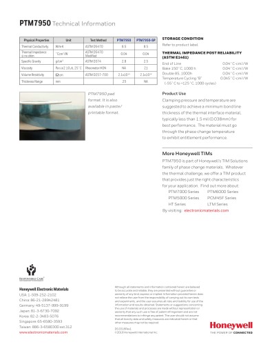 PTM7950, oparty na nowatorskim systemie polimerowym PCM, wykazuje doskonałe właściwości pracy.