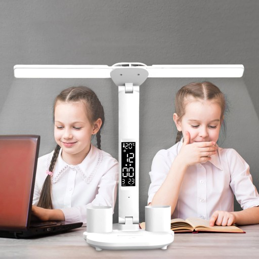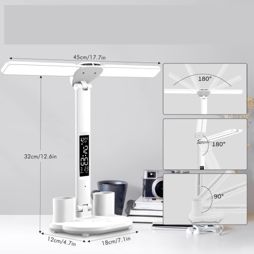 ta stylowa lampa biurLED (ta stylowa lampa obsługuje również monitorowanie temperatury, wyświetla godzinę i datę kalendarza, wszystko może być wyraźnie wyświetlane na dużym wyświetlaczu LCD, przenośny i jasny, idealny do nauki w sypialni i do czytania.