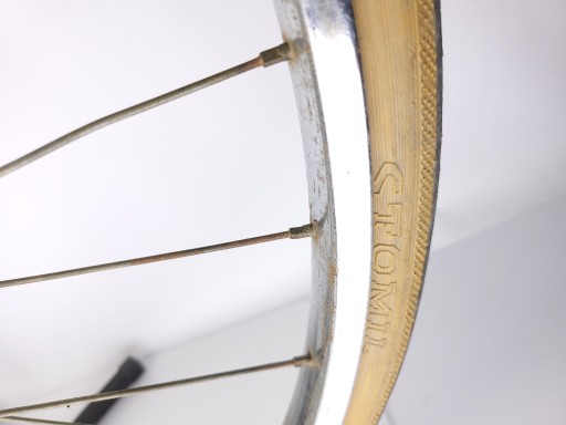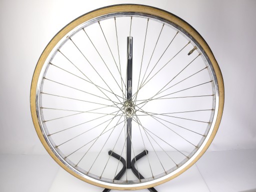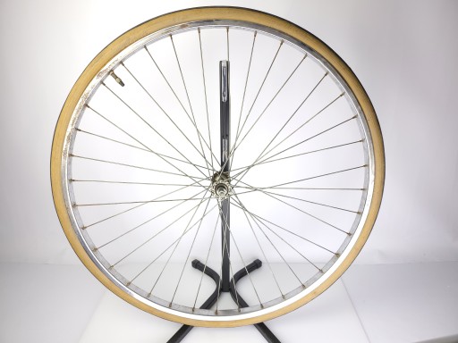Koło przednie do rowerów Romet Wagant, Gazela, Mistral, Meteor, Kometa, Finale, Wagant Sport, Pasat, Huragan, Kormoran, Wilga, Żuraw itp. z kołami 27 1/4 cala. Obręcz ze znaczną korozją, opona 1986 rok w ładnym stanie.