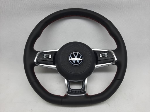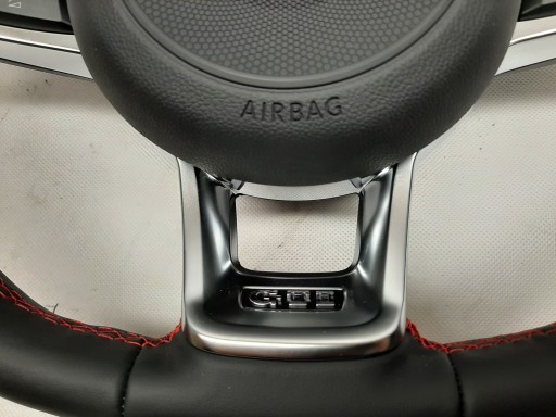 Kierownica skórzana czarna wielofunkcyjna z łopatkami zmiany biegów, przeszywana czerwoną nicią kompletna z poduszką powietrzną AIRBAG do