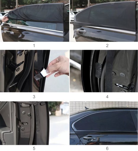 Osłona Przeciwsłoneczna do Samochodu na Szybę - Zestaw 2 sztuk tylne drzwi + 4 rzepy