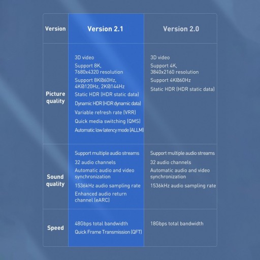 - Standard HDMI: 2.1 (kompatybilność: 2.0/1.4/1.3/1.2/1.1/1.0)
