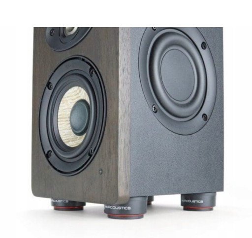 Warto wspomnieć, że izolatory Iso-Puck Mini są sprzedawane w zestawie po 8 sztuk. Jedną sztukę izolatora przewidziano na obciążenie do 2,75 kg. W zależności od wagi głośnika, korzysta się z 3 lub więcej izolatorów.