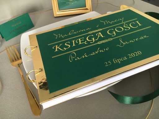 - księga gości zawiązana jest satynową wstążką (do wyboru: zielona i złota)