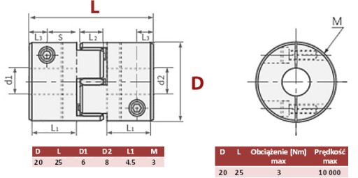 Sprzęgło bezluzowe kłowe 6x8 mm