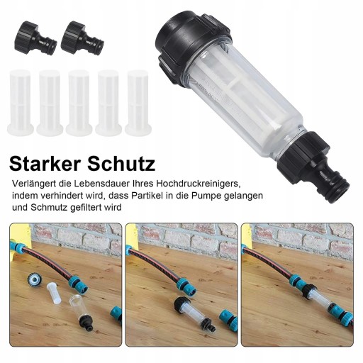 Silna ochrona: Wysoka wydajność filtracji, skutecznie zapobiega przedostawaniu się cząstek do pompy i filtrowaniu zanieczyszczeń, wydłuża czas pracy myjka ciśnieniowa.