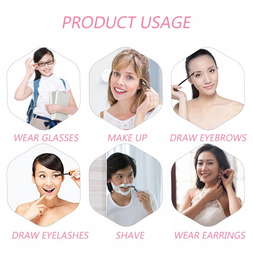10-krotne powiększenie, do nakładania makijażu, noszenia soczewek do oczu, przycinania brwi, golenia, stylizacji włosów, pielęgnacji twarzy itp.