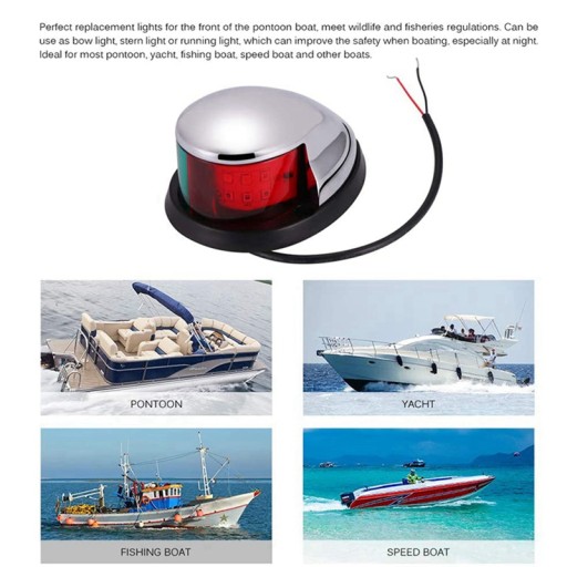 Szerokie zastosowanie. Światło nawigacyjne jest idealnym zamiennikiem światła z przodu łodzi pontonowej, spełnia przepisy dotyczące dzikiej przyrody i rybołówstwa, które mogą być używane jako światło dziobowe, światło rufowe lub światło do jazdy i poprawiają bezpieczeństwo podczas pływania łódką, szczególnie w nocy. Światło nawigacyjne jest idealne dla większości pontonów, jachtów, łodzi rybackich, łodzi motorowych i innych łodzi.