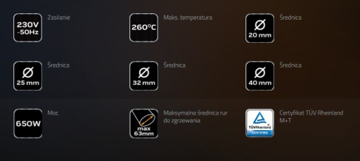 - Zestaw zawiera: 4 tuleje grzewcze o średnicach: 20, 25, 32, 40 mm