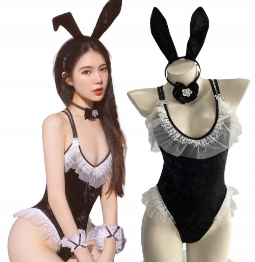 ❤️UROCZY SEKSOWNY ZESTAW KRÓLICZKA, MOCNO EROTYCZNE, ROZPALA ZMYSŁY Z CYRKONIAMI, DOSKONAŁA JAKOŚĆ, ROZPINANE W KROKU BODY ❤️