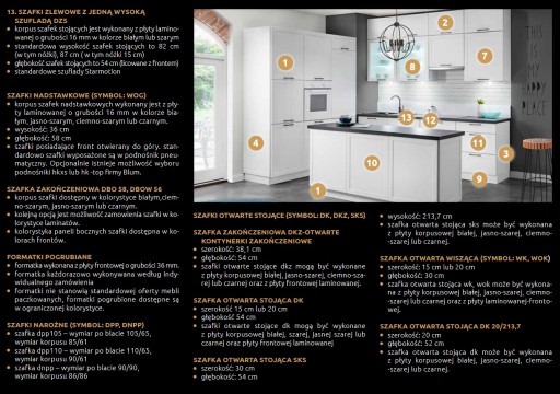 - COKOŁY w standardzie do każdej szafki dolnej dołączony jest cokół przedni o wysokości 10 lub 15 cm, wykonany w kolorze wybranego korpusu.