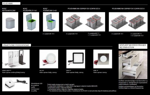 - SZAFKI Z SZUFLADAMI szafki z jedną, z dwoma lub z trzema szufladami wyposażone są w standardzie w samodomykające się szuflady starmotion,