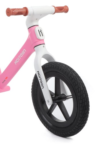 Nowoczesny rowerek biegowy dla dzieci w kolorze różowym z pompowanymi oponami