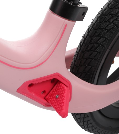 Ten lekki, wytrzymały i nowoczesny rowerek dziecięcy został wykonany z wysokiej jakości stali węglowej, pokrytej miękkim i bezpiecznym nylonem w kolorze różowym. Dzięki temu Twój maluch będzie miał nie tylko stylowy, ale również wygodny rowerek. Rama Lenny-05 posiada rozkładane podstopniki, które umożliwiają dziecku przyjęcie wygodnej i bezpiecznej pozycji na rowerku podczas jazdy, układając stopy w dedykowanym do tego celu miejscu. Rowerek biegowy dla dwulatka waży zaledwie 3,5 kg, co pozwala na łatwe przemieszczanie go z miejsca na miejsce.