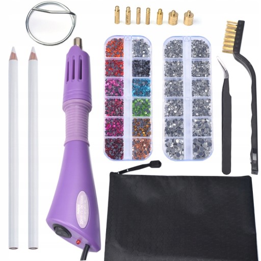 Jest to aplikator do majsterkowania Hot-Fix, który może dodawać błyszczące cyrkonie do twoich przedmiotów, w tym odzieży, torebek, telefonów komórkowych, pasków, lalek, albumów z wycinkami i innych. Działa z materiałami, które muszą być w stanie wchłonąć klej po jego stopieniu, takimi jak skóra, papier, karton, wełna-trevira, bawełna, len, wełna, wiskoza, tiul, dżins, lycra, dżersej bawełniany, jedwab, Syntetyki, używane w torbach, odzieży, zdobieniach paznokci, butach, klejnotach do mocowania na gorąco, luźnych dżetach płaskich (poliester itp.).