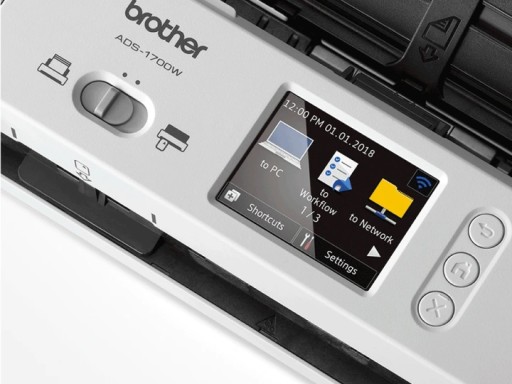 Model ADS-1700W to kompaktowe urządzenie, które zostało zaprojektowane z myślą o biurach, w których z jednej strony jest ograniczona ilość miejsca, a z drugiej istnieje potrzeba wydajnego i wszechstronnego skanowania. Dzięki interfejsowi sieci bezprzewodowej można go ustawić w najbardziej dogodnym dla miejscu. Skanuj dokumenty bezprzewodowo do swojego laptopa lub telefonu komórkowego za pomocą skanera ADS-1700W. Teraz skanowanie jest szybkie i łatwe dla każdego, zarówno w domu, jak i w biurze. Skanowanie do wielu różnych lokalizacji nigdy nie było łatwiejsze. Oszczędzaj czas i jeszcze szybciej wykonuj powtarzalne operacje, korzystając z trybu automatycznego uruchamiania skanowania. Możesz także dodać parę skrótów do ekranu dotykowego, by zapewnić sobie intuicyjną kontrolę nad skanowaniem dokumentów do różnych lokalizacji.