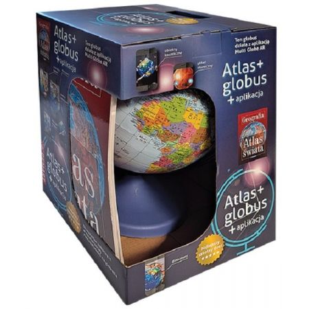 Pakiet stanowi Globus z podziałem politycznym o średnicy 22 cm i Atlas Świata z rozbudowaną częścią poświęconą Polsce. Atlas i globus w jednym pakiecie dają możliwość zarówno pokazania bogatej informacji rozmieszczonej przestrzennie na mapach w większych skalach na mniejszym obszarze, jak i poprawnego przedstawienia obrazu całego świata na kulistym globusie w skali 1 : 60 000 000. Świetnie się więc uzupełniają. Atlas Świata to publikacja książkowa skonstruowana zgodnie z zasadą od ogółu do szczegółu. Zawiera opisy i grafiki wszechświata, w tym Układu Słonecznego oraz Ziemi jako planety, zestawienie rekordów naszego globu, a także wiele map. Są to mapy: - świata - kontynentów - regionów - Polski Globus to przedstawienie Ziemi na powierzchni kuli w określonej skali. W przeciwieństwie do map świata nie zniekształca: kształtów, kątów, odległości i proporcji. W danej skali przedstawia wiernie zarysy kontynentów, wysp, rzek i dróg. Globus posiada funkcję obracania (odpowiadającą ruchowi obrotowemu Ziemi wokół osi skutkującemu porami dnia), która pozwala na wygodne oglądanie dowolnego obszaru naszego globu. W zestawieniu z atlasem globus koryguje niedogodności wynikające ze wspomnianych zniekształceń na mapach świata. Z oczywistych względów nie może jednak konkurować w zakresie bogactwa treści z atlasem. Globus o średnicy 22 cm, wykonany w skali 1 : 60 000 000 zawiera około 1400 różnych geograficznych nazw własnych. Trudno byłoby sobie wyobrazić korzystanie z gigantycznego globusa wykonanego w tej samej skali co prezentowana w atlasie mapa Polski, czyli 1 : 1 500 000 - jego średnica musiałaby mieć ok. 8,5 m! Globus posiada estetyczną plastikową podstawkę, jest poręczny i lekki.