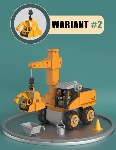 - akcesoria m.in.: figurka budowlańca, gruz czy drewno