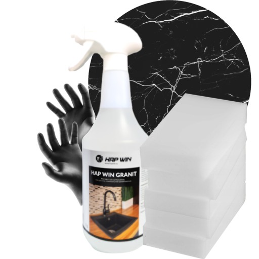 💦HAP WIN ŚRODEK DO POWIERZCHNI GRANITOWYCH 1 L + MAGICZNA GĄBKA x5 + RĘKAWICZKI