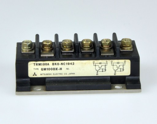 Używane, pochodzący z demontażu, całkowicie sprawne tranzystory darlingtona podwójne NPN z poniższych zdjęć. Stan bardzo dobry. Produkt firmy Mitsubishi, symbol: QM100DX-H TRM100A.