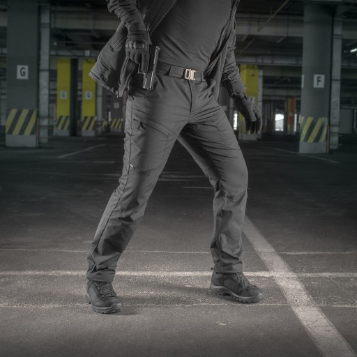 Spodnie taktyczne M-Tac Patrol Flex łączą w sobie stosunkowo dyskretny wygląd z wytrzymałymi materiałami i ukrytą rozszerzoną funkcjonalnością, która jest skierowana przede wszystkim do funkcjonariuszy organów ścigania. Spodnie szyte z lekkiej, jednobarwnej tkaniny rip-stop z ochronną warstwą z teflonu chroniącą przed wodą i brudem. Tkanina z zawartością poliestru i bawełny jest przyjemna dla ciała, dobrze trzyma kolor i charakteryzuje się wysoką trwałością. Głównym zadaniem projektantów spodni było zapełnienie komfortu ruchów, a poradzili sobie z tym zadaniem w stu procentach, ponieważ spodnie dają poczucie lekkości, nie krępujące ruchów oraz wyglądają stylowo i solidnie. Spodnie zapinane są na guzik i zamek błyskawiczny YKK.