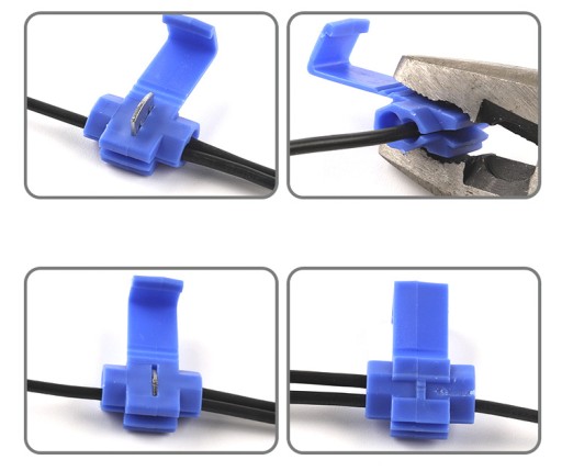 - Zaciśnij przewody za pomocą kombinerek, lub plastikowego klipsa złączki