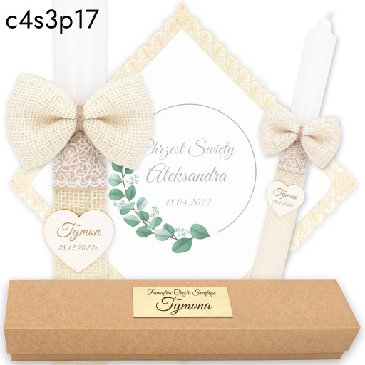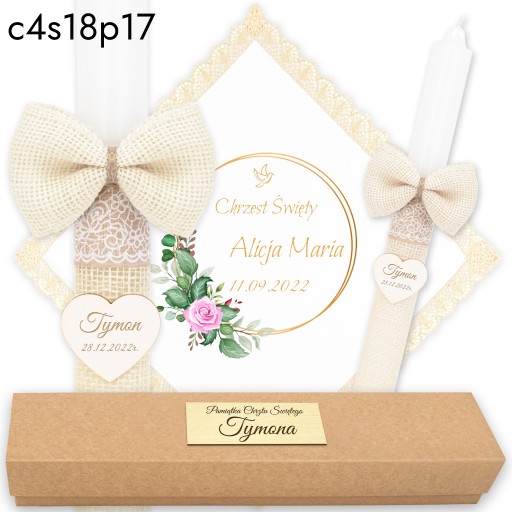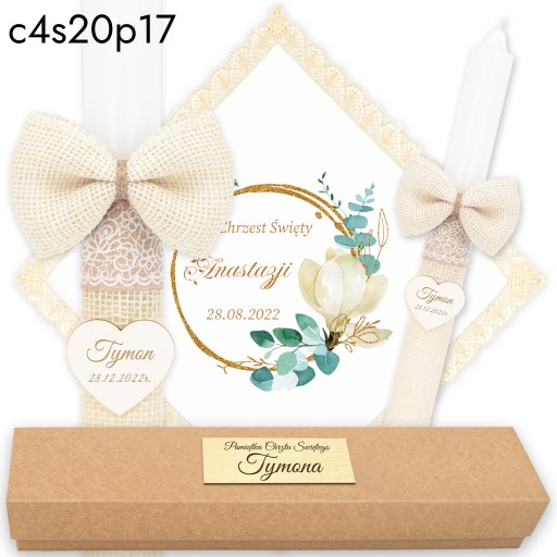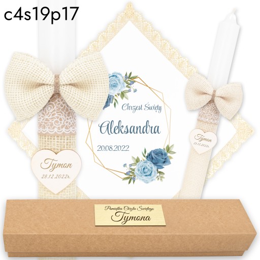 ŚWIECA Do Chrztu + SZATKA Na Chrzest pudełko imię