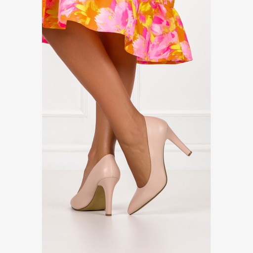 Beżowe czólenka damskie model 1446 to eleganckie i kobiece obuwie wykonane z wysokiej jakości skóry ekologicznej. Są trwałe i gwarantuja odpowiednie warunki dla stóp. Wkładka wykonana ze skóry zapewnia komfort użytkowania. Charakteryzują się wysokim, a zarazem stabitnym obcasem. Wysokie obcasy dodają kobiecie pewności siebie i elegancji, a zarazem optycznie wysmuklają nogi. Beżowy kolor jest neutralny, ponadczasowy i łatwo łączy się z różnymi stylami i kolorami garderoby. Idealnie pasują do wielu kolorów, takich jak czerń, biel, szarości, czy pastele, dając możliwość tworzenia różnorodnych outfitów. Obuwie to jest uniwersalnym wyborem, który pasuje do wielu stylizacji. Można je nosić zarówno na formalne okazje, jak i na bardziej casualowe wyjścia. Doskonale komponują się z sukienkami, spódnicami ołówkowymi, spodniami cygaretkami czy nawet jeansami. Sklep proponuje wiele wariantów kolorystycznych tego fasonu, których nie powinno zabraknąć w Twojej szafie.