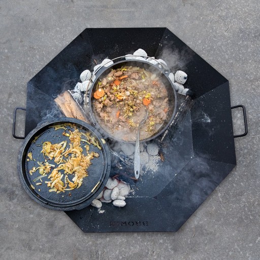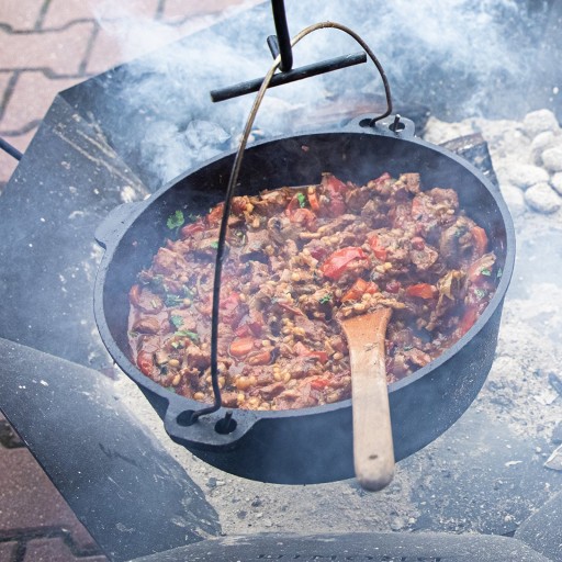 - Doskonały materiał - wysokiej jakości żeliwo, które tradycyjnie świetnie sprawdza się przy przygotowywaniu potraw i jest wprost idealne do biesiadowania na wolnym powietrzu.